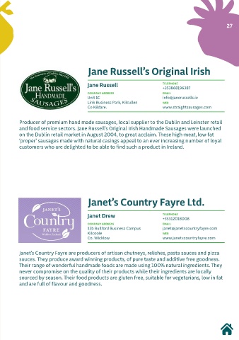 and food service sectors. Jane Russell’s Original Irish Handmade Sausages were launched
