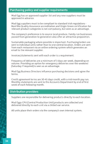 Mad Egg suppliers must to be compliant to standard Irish regulations –