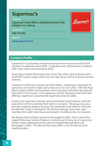 Supermac’s is a privately owned Irish quick service restaurant chain that