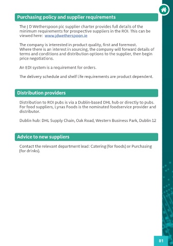 The J D Wetherspoon plc supplier charter provides full details of the