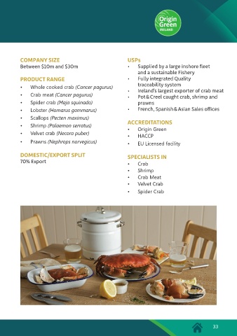 • Ireland’s largest exporter of crab meat