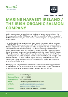 Marine Harvest Ireland is the only producer of organic salmon in the Marine Harvest